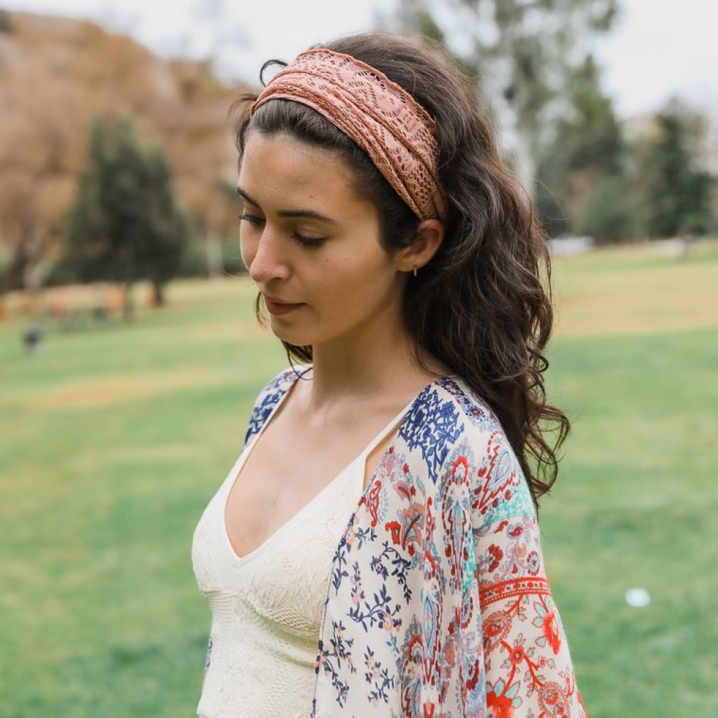 The headwrap can be perfectly worn wide, folded and scrunched, on your forehead, back, or as a hair tie. So many different options in just one girlie accessory!