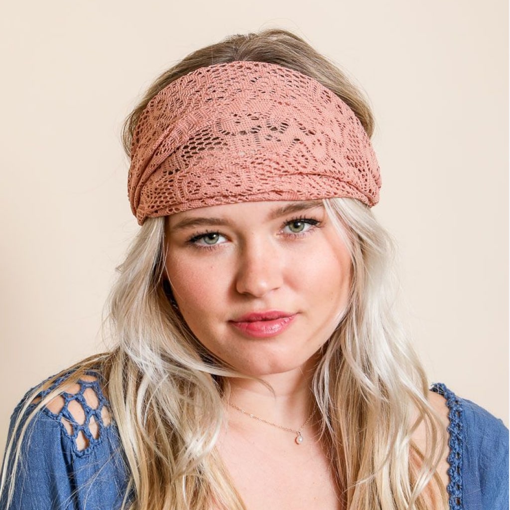 Our wide stretchy pink lace headband is your new go-to accessory! Wide in the front and tapered in the back, it is perfect to be worn whatever way you choose. There are no more bad hair days here!