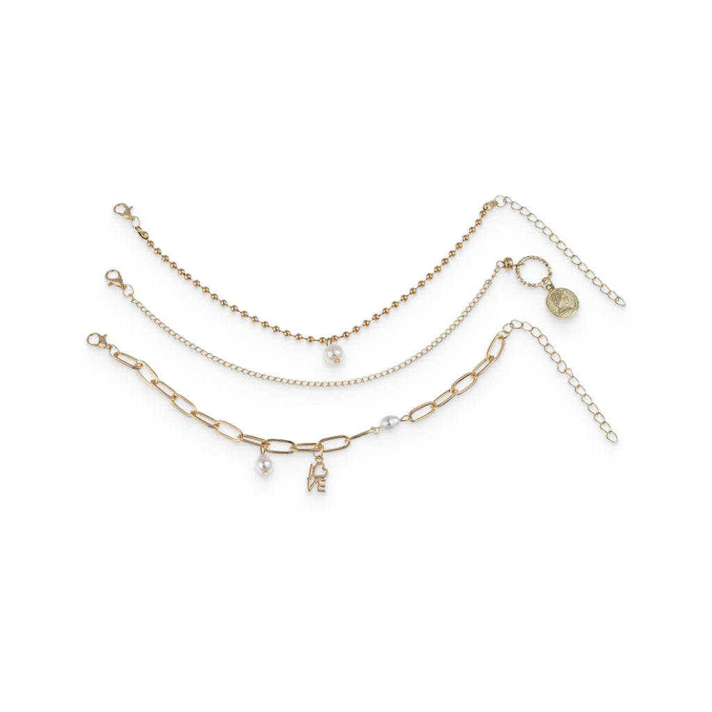 A golden bracelet carries a much deeper meaning than regular accessories. Not only does it greatly complement your look, but highlights the gracefulness and beauty of a lady's wrist. Enrich your style with this multi piece bracelet set!