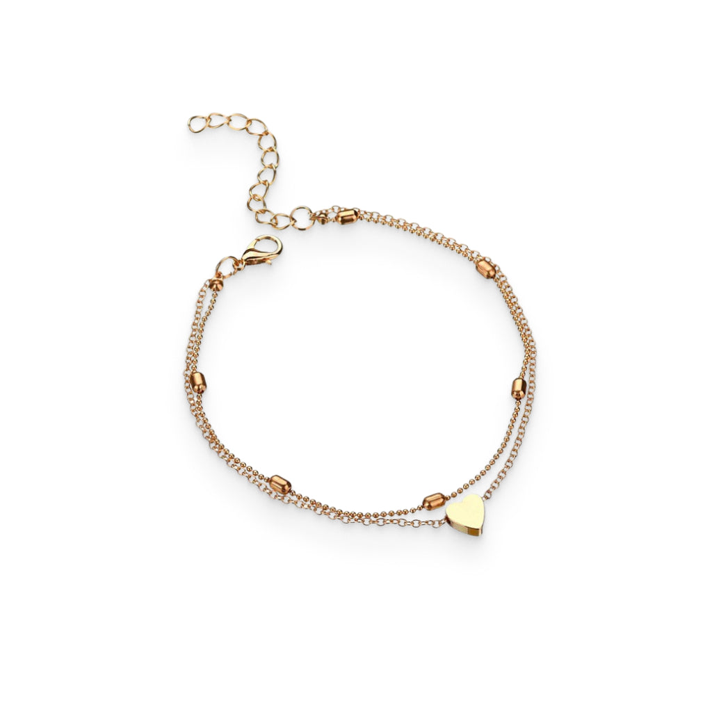 Do you feel like your look is a bit outdated and needs a little refreshment? Brighten up your summer fashion style with this beautiful golden heart double chain ankle bracelet.