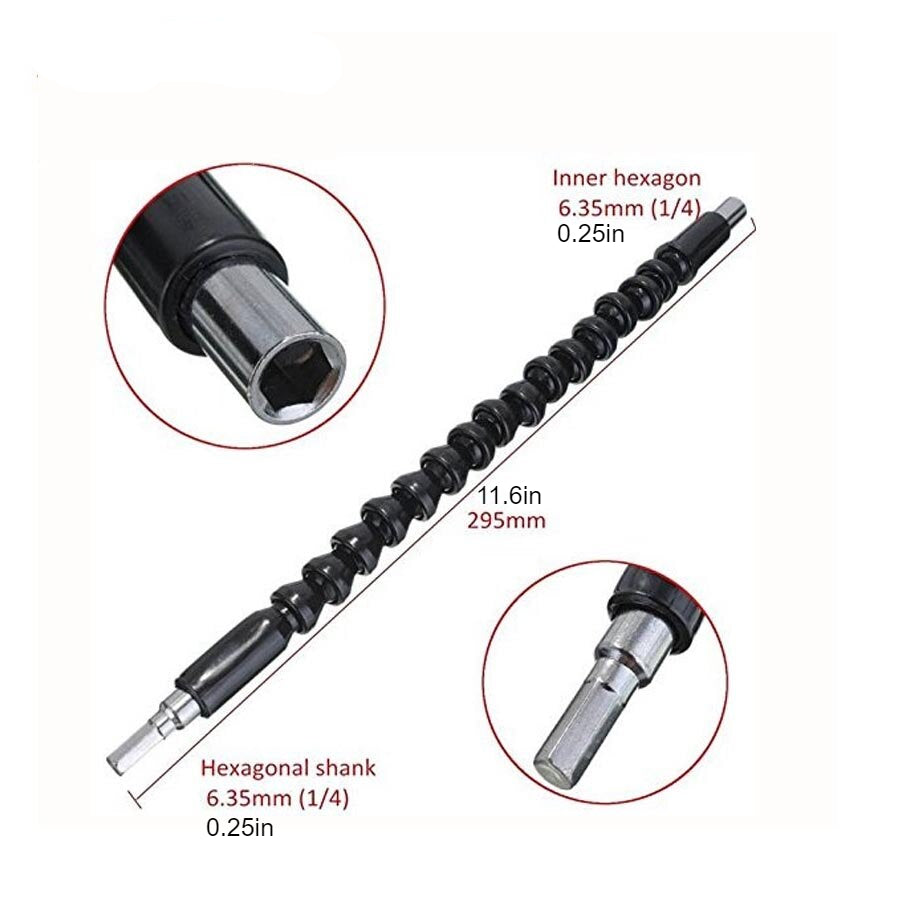 The inner shaft of our extension is crafted from high-quality carbon steel while the outer layer is made of flexible performance-made plastic. Each drill bit in our shaft features a 1/4 inch hexagon drill bit, making it compatible with a variety of devices ranging from hand drills to electric drills.