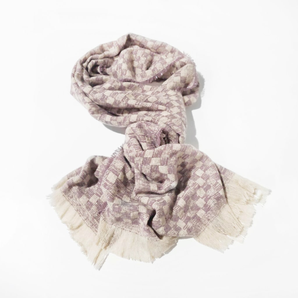 Add instant, effortless style to any look by accessorizing with this checkered weave scarf. Features golden lurex thread that adds the right amount of shimmer to your outfit.