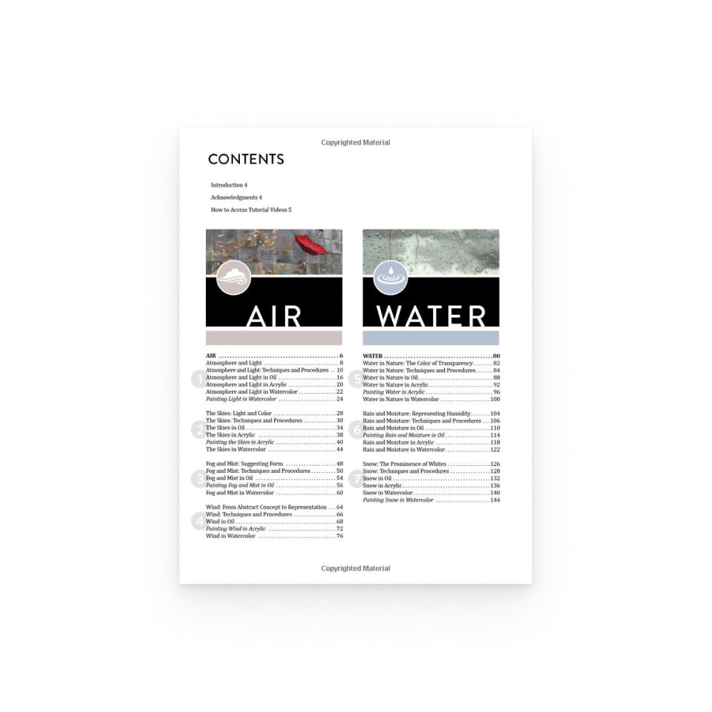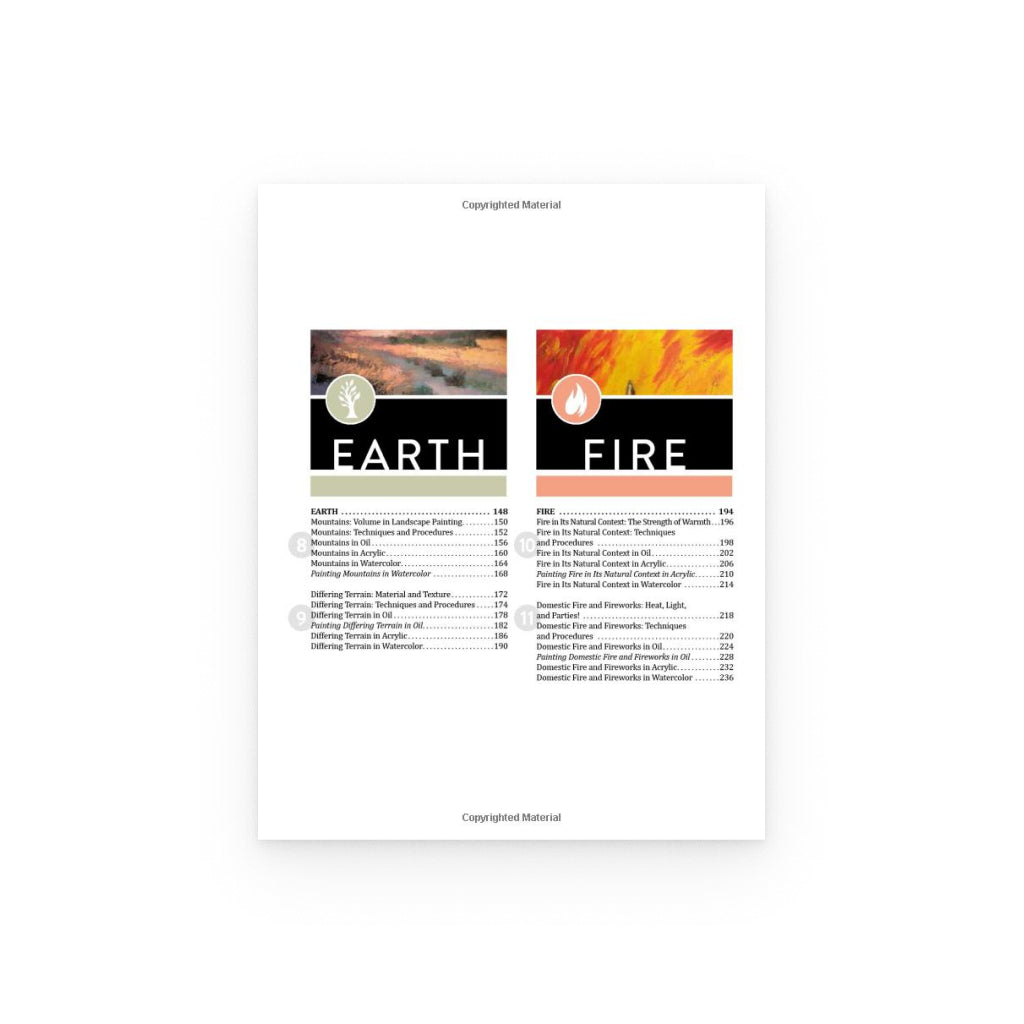 Air, Water, Earth, Fire. All life on Earth depends on and survives because of the four elements of nature. Poets and painters alike have captured their allure and our desire for beauty. But how do artists render the essence of atmosphere and light, the sky, fog and mist, and wind and snow, as well as different terrain, mountains, wildfire, and festive fireworks?