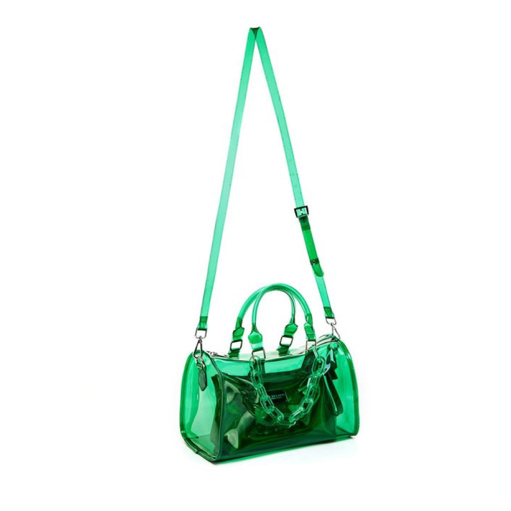 Are you looking for a stylish bag, but you want something special? If so, look at this Sub-Zero Clear Chain Barrel Bag. Designed to attract other people’s attention, this transparent trendy satchel with top handles and adjustable shoulder strap features a matching large pouch and chain detail!