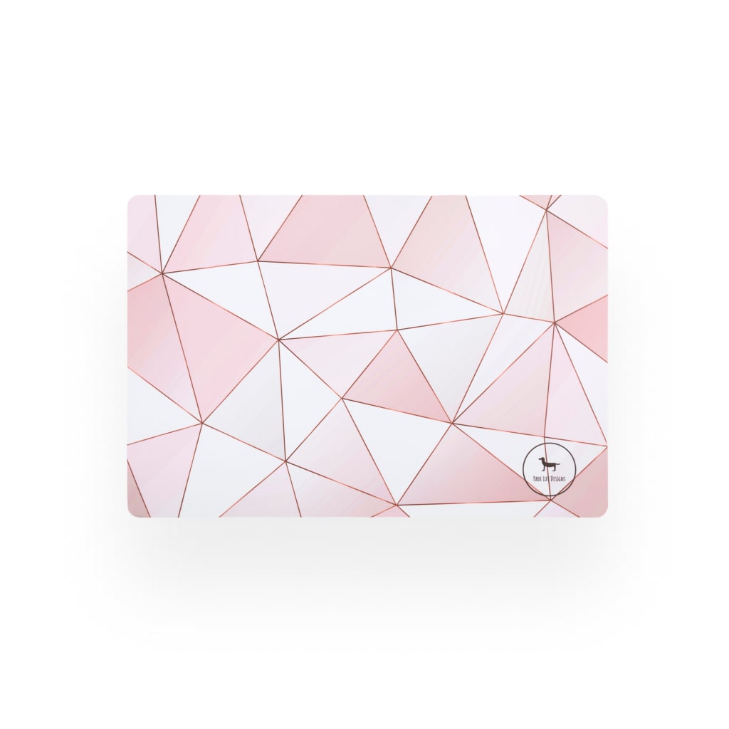 A beautiful geometric pink & white design wreathes its water-resistant frame, adding an air of luxury to an everyday necessity. It will keep spills and messes on the mat and off your carpet or hardwood floor. Has an anti-slip backing to keep the mat in place.