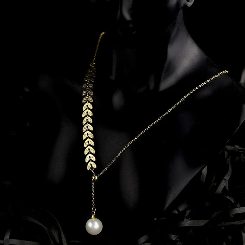 A gold necklace is much more than a simple piece of decoration. The right necklace will highlight your look and brighten your attire. Enrich your style with this graceful wheat shaped pearl necklace.